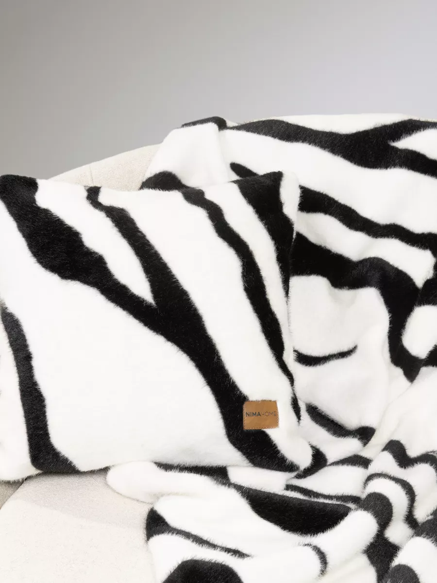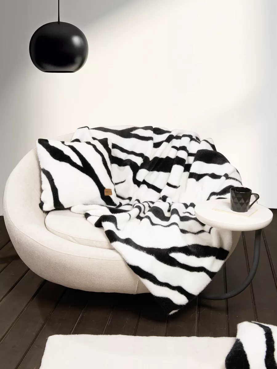 Η κουβέρτα καναπέ sebra white θα μεταμορφώσει τον χώρο σας σε μια ζεστή και κομψή αγκαλιά. Η μοντέρνα animal print αισθητική της, σε αριστοκρατικό λευκό χρώμα με εντυπωσιακές μαύρες ρίγες, χαρίζει στυλ και χαρακτήρα στο σαλόνι σας, ενώ η απαλή του υφή προσφέρει αξεπέραστη άνεση. Στην εσωτερική της όψη έχει την απόχρωση του γλυκού μπεζ και απαλή, λεία υφή για να σας αγκαλιάσει απαλά τα χειμωνιάτικα βράδια. Το σχέδιό της ταιριάζει εύκολα σε μοντέρνο αλλά και κλασικό στιλ διακόσμησης, φέρνοντας τη ζεστή θαλπωρή που επιθυμούμε να έχει το σπίτι μας όταν κρυώνει ο καιρός. Χαρίστε στο καθιστικό σας μια νότα πολυτέλειας και απολαύστε στιγμές χαλάρωσης με την κουβέρτα καναπέ sebra beige!