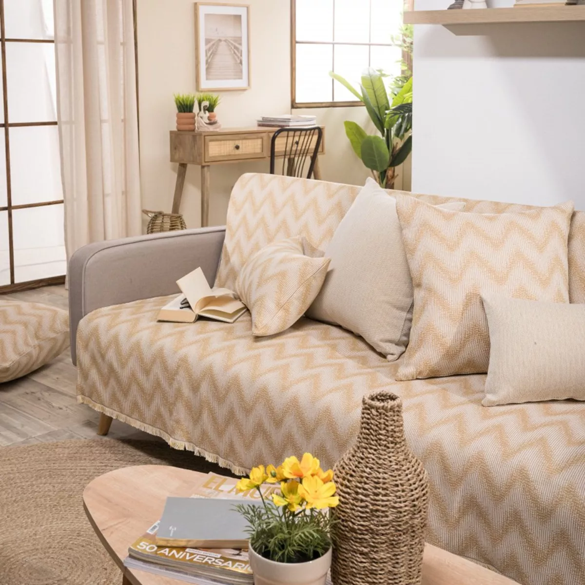 Τα υφάσματα υφαίνονται στην Ελλάδα από ελληνική υφαντουργία και μεταποιούνται από την εταιρία μας.Η σύνθεση του υφάσματος των ριχταριών αποτελείται από νήματα βαμβακερά σε ποσοστό 75% και πολυεστερικά σε ποσοστό 25%.