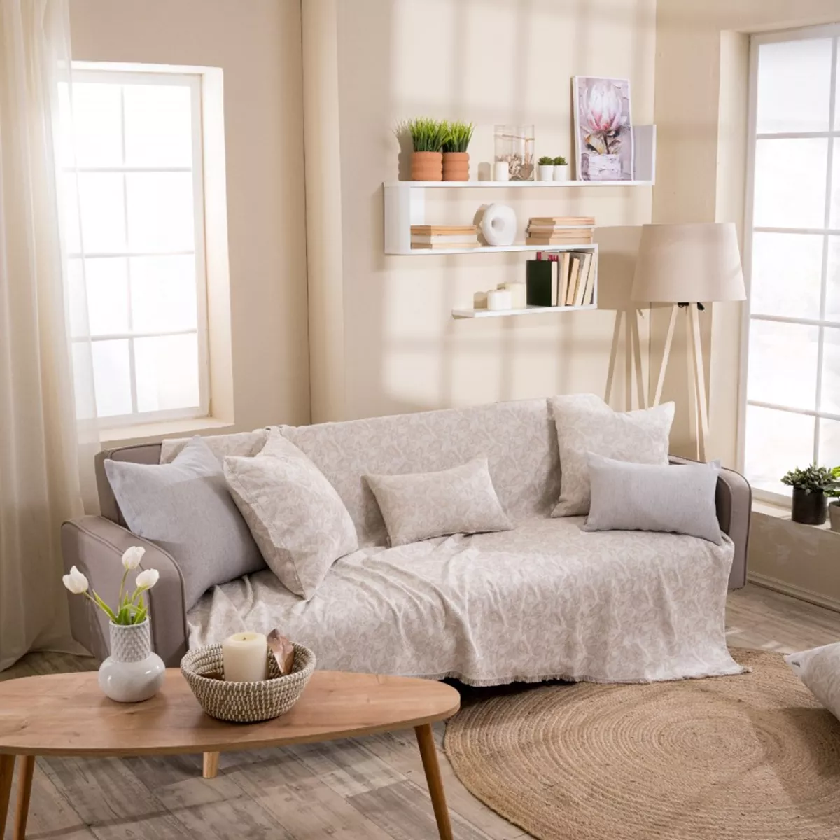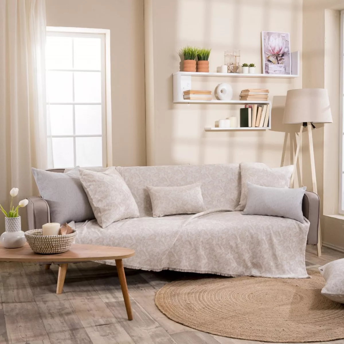 Τα υφάσματα υφαίνονται στην Ελλάδα από ελληνική υφαντουργία και μεταποιούνται από την εταιρία μας.Η σύνθεση του υφάσματος των ριχταριών αποτελείται από νήματα βαμβακερά σε ποσοστό 75% και πολυεστερικά σε ποσοστό 25%.