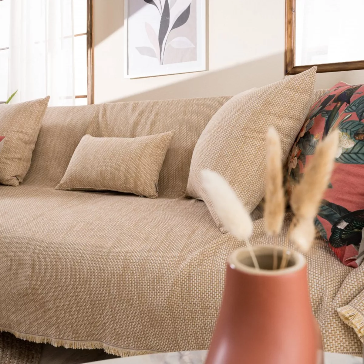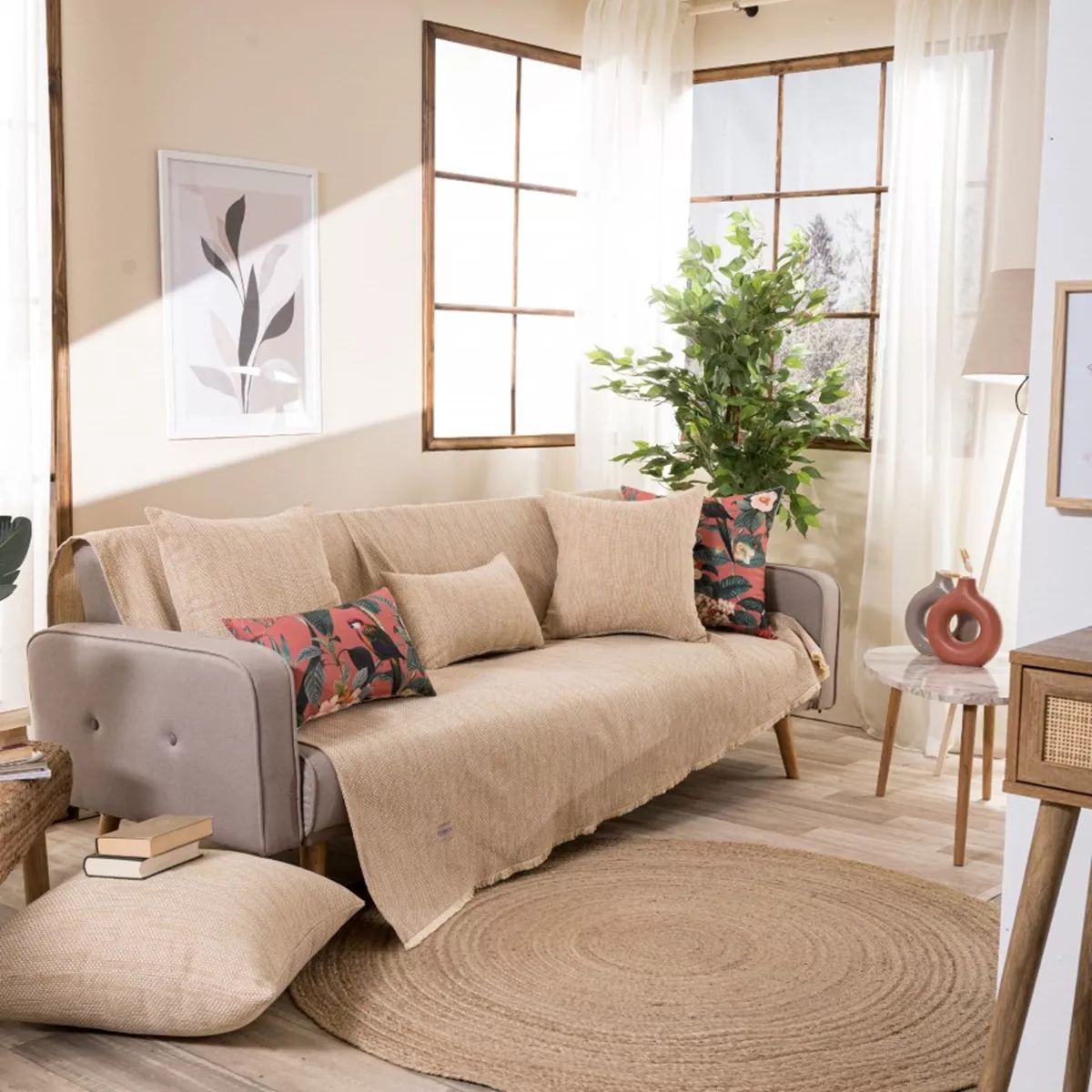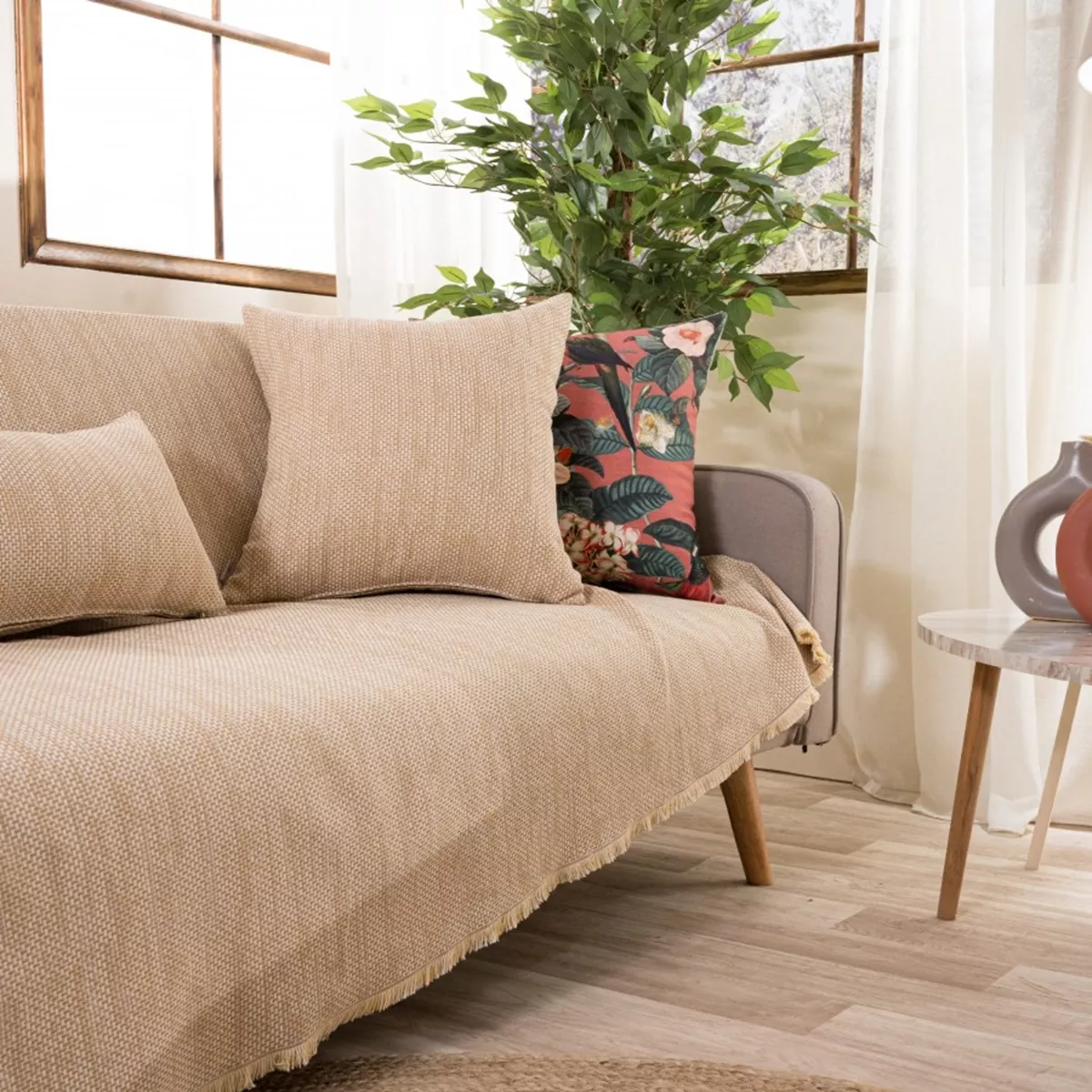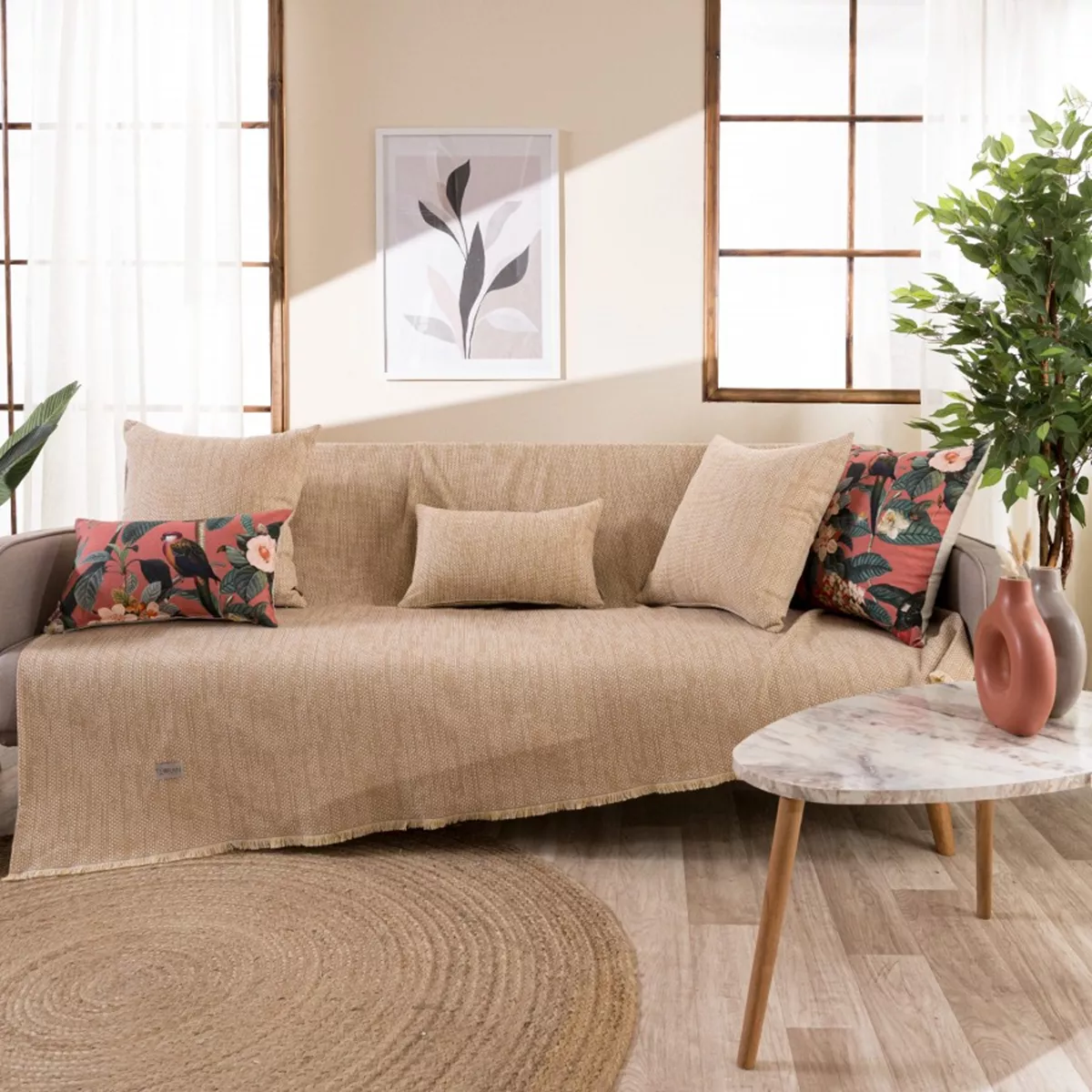 Τα υφάσματα υφαίνονται στην Ελλάδα από ελληνική υφαντουργία και μεταποιούνται από την εταιρία μας.Η σύνθεση του υφάσματος των ριχταριών αποτελείται από νήματα βαμβακερά σε ποσοστό 75% και πολυεστερικά σε ποσοστό 25%.