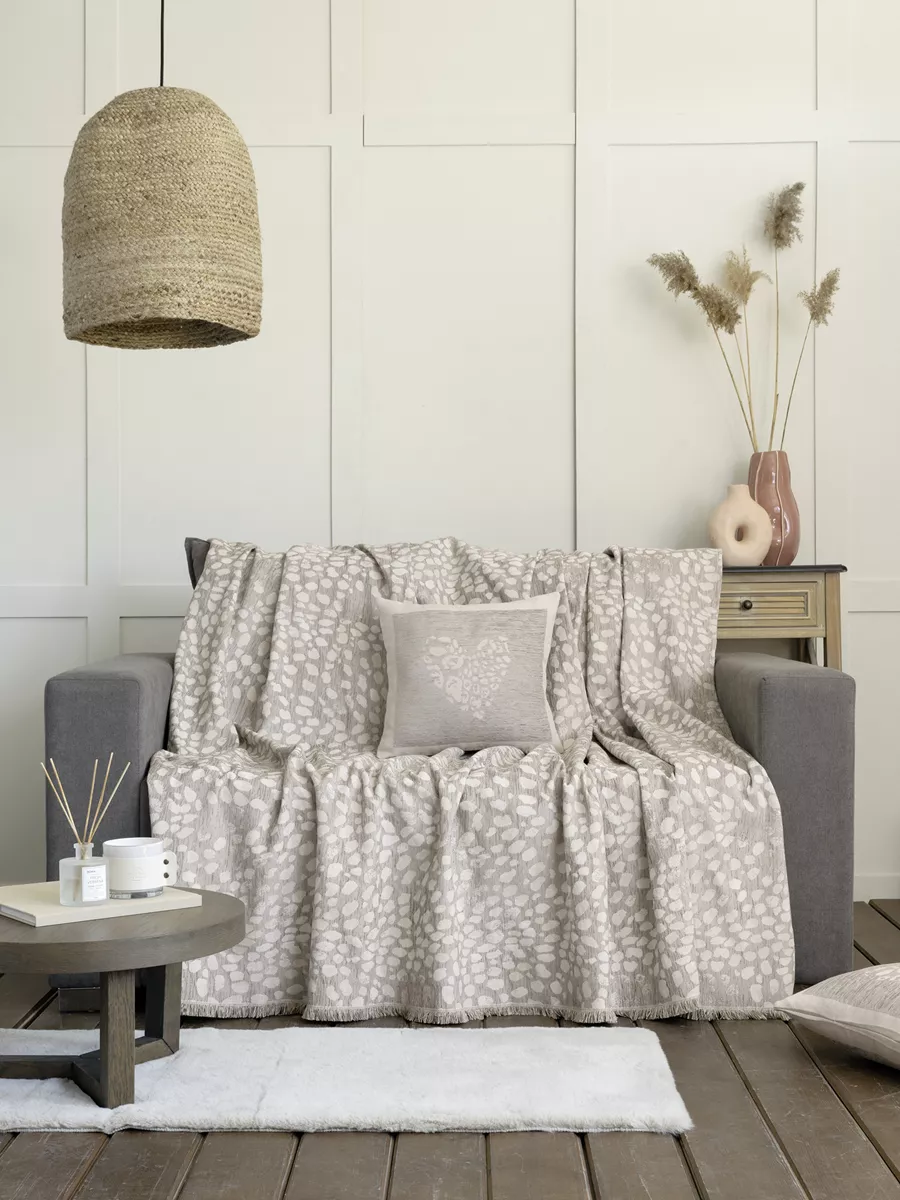 to ριχτάρι sylvan beige σε διαχρονική απόχρωση του μπεζ δίνει την απόλυτη αίσθηση άνεσης και κομψότητας. το μοτίβο του, εμπνευσμένο από animal print σε απαλά γήινα χρώματα, προσθέτει μια διακριτική αίσθηση άγριας φύσης και πολυτέλειας στο χώρο σας. η ιδιαίτερη υφή του ριχταριού, σε συνδυασμό με το μοναδικό του σχέδιο, δημιουργούν μια φιλόξενη ατμόσφαιρα με στυλ και κομψότητα. είναι ιδανικό για να αναδείξετε κάθε σαλόνι με μια εκλεπτυσμένη πινελιά.