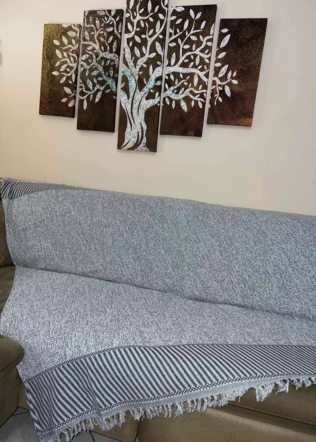 Σετ ριχτάρια 2 τεμαχίων Σενίλ Ριγέ φάσα Γκρι Ανοιχτό