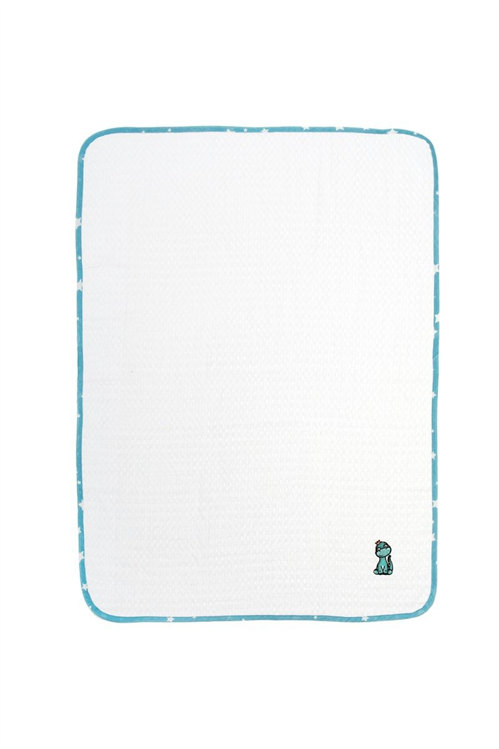 Κουβέρτα Πικέ Με Κέντημα bebe Dinosaur 180 80X110 White-Sky Blue 100% Cotton