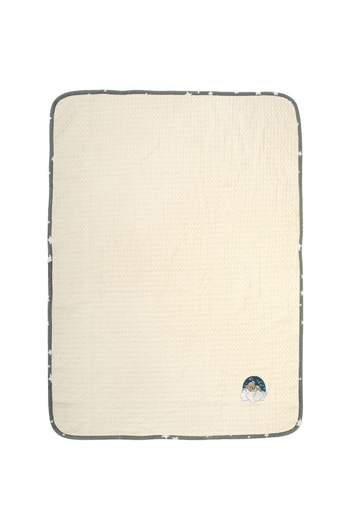 Βρεφική κουβέρτα πικέ αγκαλιάς με ανάγλυφο σχέδιο βάφλα, χρώματος εκρού, διαστάσεων 80 x 110 cm, διακοσμημένη με χαριτωμένο κέντημα κοιμώμενο αρκουδάκι και χρωματιστό ρέλι με μοτίβο αστεράκια. Κατασκευασμένη από 100% βαμβακερό, υποαλλεργικό woven πικέ ύφασμα βάρους 325 gr/m². Χάρη στην εξαιρετικά απαλή υφή της, αγκαλιάζει το μωρό σας με άνεση, ενώ η ιδιαίτερη ύφανση βάφλα επιτρέπει στο δέρμα να αναπνέει, καθιστώντας την ιδανική επιλογή για την άνοιξη και το καλοκαίρι. Συσκευασία δώρου: κουτί πολυτελείας. Η κουβέρτα είναι ελεγμένη για επιβλαβείς ουσίες με το παγκοσμίως αναγνωρισμένο πιστοποιητικό OEKO-TEX® Standard 100.