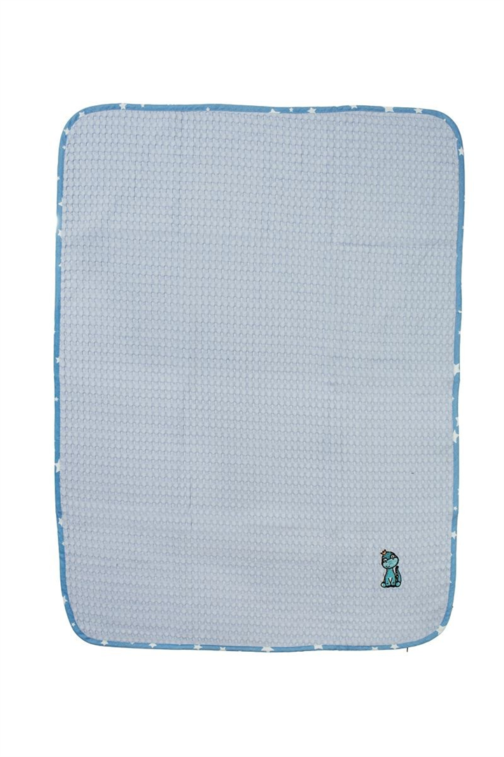Βρεφική κουβέρτα πικέ κούνιας με ανάγλυφο σχέδιο βάφλα, χρώματος σιελ, διαστάσεων 100 x 160 cm, διακοσμημένη με χαριτωμένο κέντημα δεινοσαυράκι και χρωματιστό ρέλι με μοτίβο αστεράκια. Κατασκευασμένη από 100% βαμβακερό, υποαλλεργικό woven πικέ ύφασμα βάρους 325 gr/m². Χάρη στην εξαιρετικά απαλή υφή της, αγκαλιάζει το μωρό σας με άνεση, ενώ η ιδιαίτερη ύφανση βάφλα επιτρέπει στο δέρμα να αναπνέει, καθιστώντας την ιδανική επιλογή για την άνοιξη και το καλοκαίρι. Συσκευασία δώρου: κουτί πολυτελείας. Η κουβέρτα είναι ελεγμένη για επιβλαβείς ουσίες με το παγκοσμίως αναγνωρισμένο πιστοποιητικό OEKO-TEX® Standard 100.