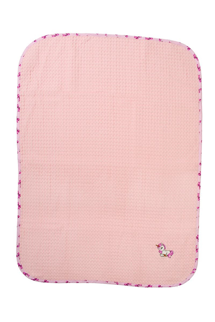 Βρεφική κουβέρτα πικέ κούνιας με ανάγλυφο σχέδιο βάφλα, χρώματος ροζ, διαστάσεων 100 x 160 cm, διακοσμημένη με χαριτωμένο κέντημα μονόκερο και χρωματιστό ρέλι με μοτίβο κορδελίτσες. Κατασκευασμένη από 100% βαμβακερό, υποαλλεργικό woven πικέ ύφασμα βάρους 325 gr/m². Χάρη στην εξαιρετικά απαλή υφή της, αγκαλιάζει το μωρό σας με άνεση, ενώ η ιδιαίτερη ύφανση βάφλα επιτρέπει στο δέρμα να αναπνέει, καθιστώντας την ιδανική επιλογή για την άνοιξη και το καλοκαίρι. Συσκευασία δώρου: κουτί πολυτελείας. Η κουβέρτα είναι ελεγμένη για επιβλαβείς ουσίες με το παγκοσμίως αναγνωρισμένο πιστοποιητικό OEKO-TEX® Standard 100.