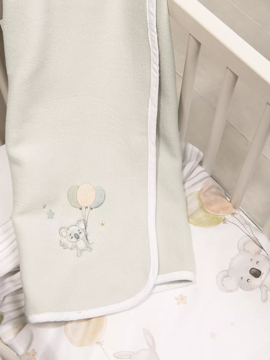 Η βρεφική κουβέρτα jouer έχει ανοικτό γκρι χρώμα και είναι κεντημένη με ένα τρυφερό σχέδιο με κοάλα αγκαλιά με χρωματιστά μπαλονάκια. Έχει περιμετρικό τελείωμα με διακριτικό βαμβακερό ρέλι και οι γωνίες της είναι στρογγυλεμένες ώστε να μην ενοχλούν την ευαίσθητη επιδερμίδα του μωρού σας. Είναι ίδανική για να προσφέρει τη γλυκιά ζεστασιά και την χαλάρωση που είναι απαραίτητη για ένα ήσυχο ύπνο. Συνδυάστε τη με ασορτί σεντόνια και πάντα για να δημιουργήσετε αρμονία στο βρεφικό δωμάτιο και να δώσετε έναν αέρα παραμυθένιας μαγείας.
