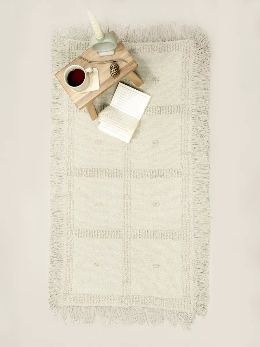 to βαμβακερό jacquard χαλάκι liora έχει φυσικό μπεζ χρώμα και διακρίνεται για τον minimal σχεδιασμό του. Έχει ανάγλυφο μοτίβο που αναπτύσεται σε όλη του την επιφάνεια σχηματίζοντας μεγάλα τετράγωνα σχήματα, δημιουργώντας μια πρόσθετη υφή και βάθος στην ύφανσή του. Περιμετρικά στολίζεται με λιτά κρόσσια που τονίζουν μια boho διάθεση. Το jacquard χαλάκι liora, χάρη στο ουδέτερο χρώμα του και τα φυσικά υλικά του, δημιουργεί μια αίσθηση ηρεμίας στον χώρο και μπορεί να συνδυαστεί πολύ εύκολα με άλλα χρώματα. Είναι η ιδανική επιλογή για να προσθέσετε έναν αέρα σύγχρονης κομψότητας στον χώρο σας, συνδυάζοντας την άψογη αισθητική με την πρακτική χρησιμότητα.